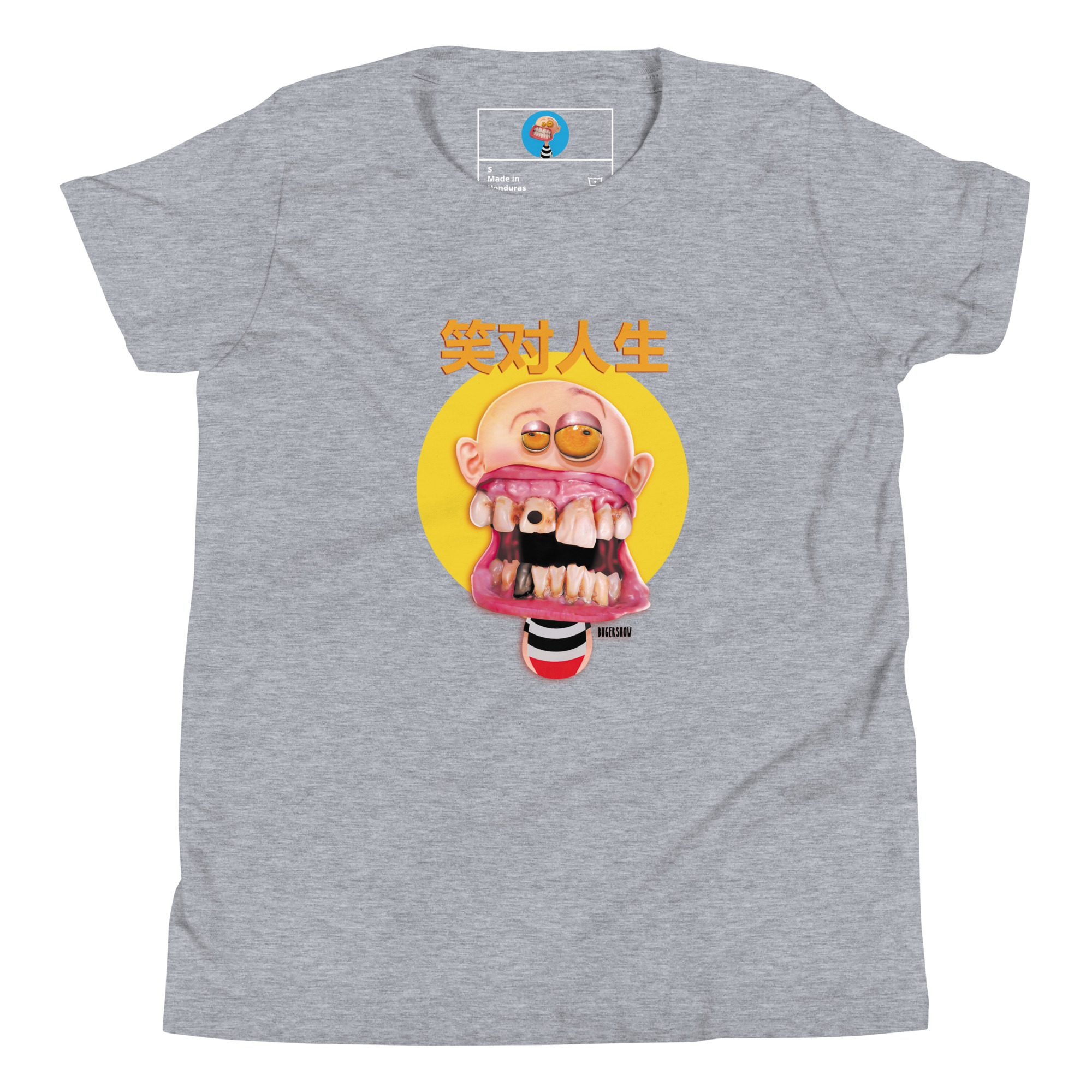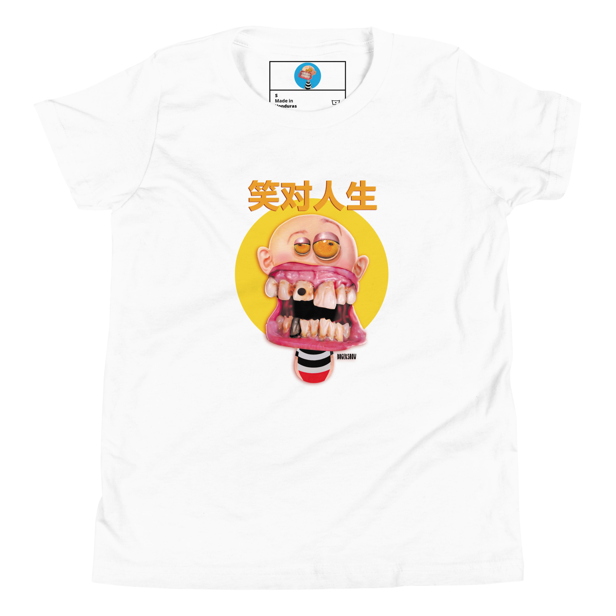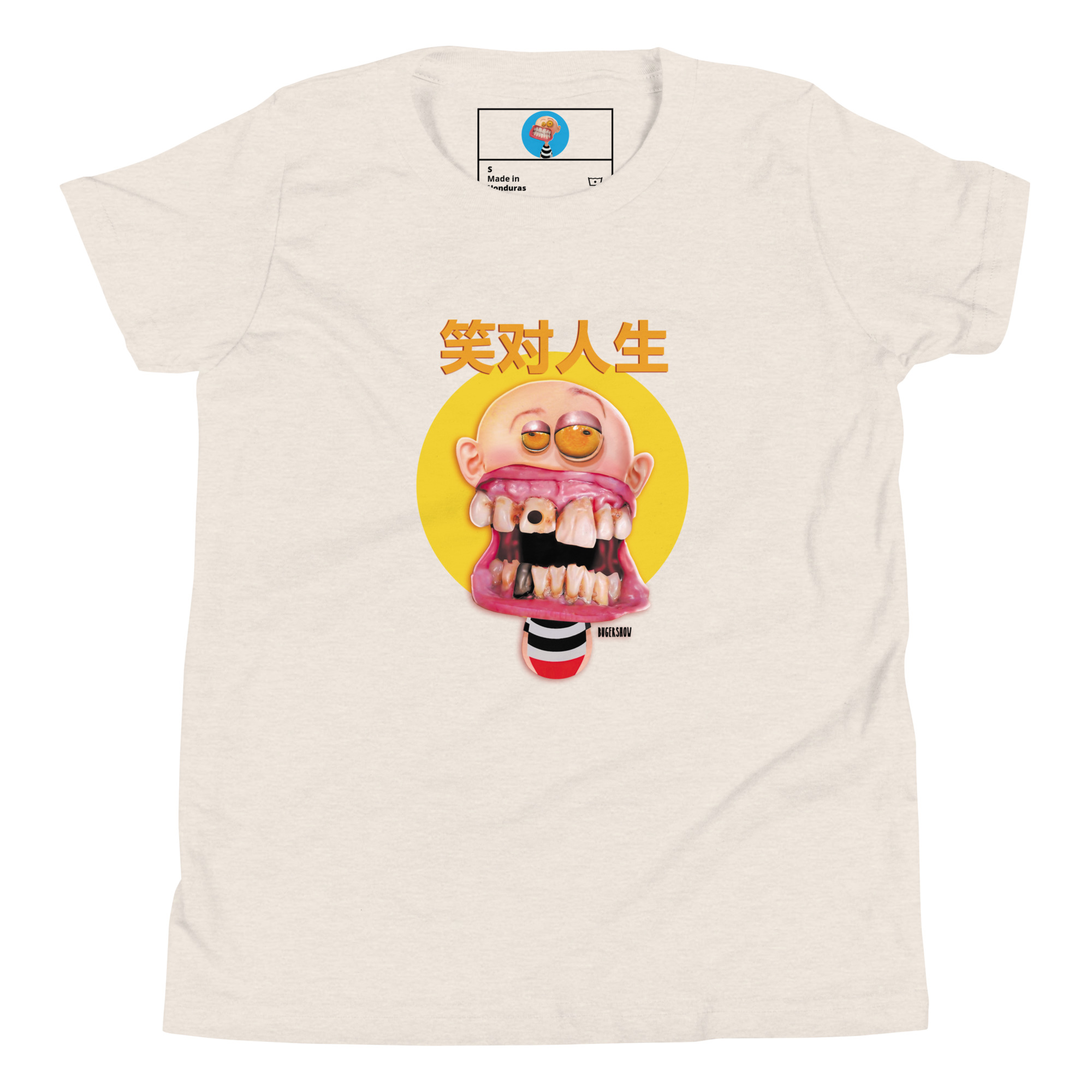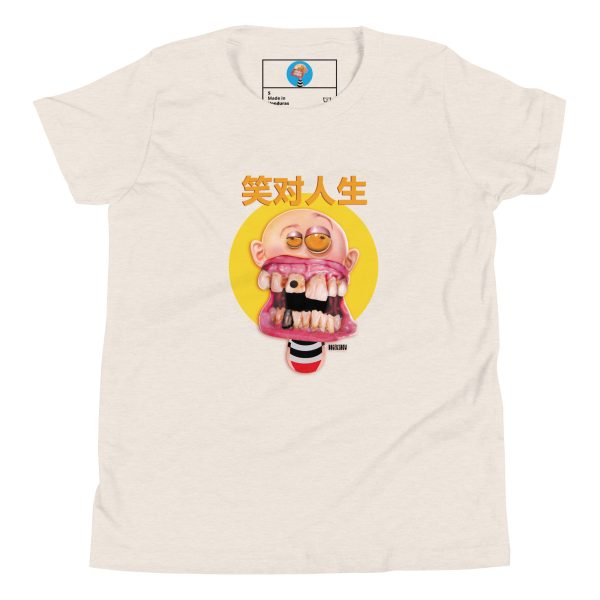Un estilo cómico con un escrito en chino que dice “Sonrie a la vida”